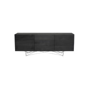 The Carbon three door sideboard is an elegant example of organic modernism blending finely crafted timbers with a contemporary pared down aesthetic. Solid hardwood French white oak is used in the construction of the frame and the cabinet doors. A web of delicate stainless steel rods lifts the body of the Carbon creating the illusion of lightness and complexity. The Carbon is available in ebonized oak with high polish stainless steel legs.