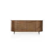 With soft shaping and inset top inspired by classic jewelry setting, caramel-finished Guanacaste forms a beautifully sculpted silhouette, with natural high and lowlights coursing the entirety of this richly styled sideboard.