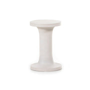 Made from white-finished cast aluminum with high texture, a dramatically tapered end table makes for a stylish spot to keep a favorite book or drink within reach. Tabletop surfaces may vary in texture and dimples, reflective of materials' organic roots.