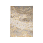 The organic abstract design of the Gold rug creates a dynamic and shimmering statement in soft tones of gray, taupe, and gold. This power-loomed rug features metallic polyester fibers blended with stain-resistant polypropylene for a brilliant sheen from various perspectives.