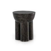 Made from raw black cast aluminum, a chunky cylinder base supports a drum-style tabletop with naturally beautiful high/low hues.
