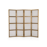 Privacy please. Framed in beautiful matte brass-finished iron, a freestanding four-panel screen with mesh inserts makes for a perfect room divider and decorative backdrop alike.