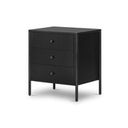 Bring a clean, beautifully industrial look to the bedroom with a three-drawer dresser made from black-finished iron, featuring bronzed iron hardware.