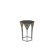 Table d'appoint crochetée. Plateau en fer peint par poudrage avec un revêtement en émail. Cadre en fer peint par poudrage et détails en fer galvanisé.