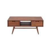 Inspirée par le design du milieu du siècle, la table basse Mod présente une esthétique raffinée du début du siècle. Élégante et fonctionnelle, la Mod offre un espace de rangement précieux avec deux tiroirs à fermeture souple et une niche centrale pour le magazine. La Mod est construite en bois de peuplier américain teinté noyer, avec des pieds en bois tourné et des cache-pieds en laiton.