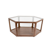 Un placage de noyer super lisse, un plateau de table en verre brillant et une grande forme hexagonale : voilà la combinaison qui rend la table basse Sita si désirable. Sita n'est pas seulement idéale pour poser des boissons et des snacks, sous le verre il y a de la place pour des livres et des magazines. Ou mieux encore, de jolis livres de table basse.