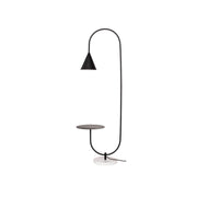 Le lampadaire Loop est l'essence même de la sculpture en tant que forme et fonction. Posé sur un socle rond en marbre blanc, le cadre curviligne noir mat du Loop, au design brillant et à l'ombre pointue, est à la fois un lampadaire et une table d'appoint circulaire.