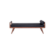 Avec son élégant cadre en noyer teinté cendre, le banc d'appoint Verne allie des éléments classiques à une esthétique moderne. Un rembourrage astucieux en naugahyde noir est intégré dans le corps du Verne, un coussin d'extrémité apporte un confort supplémentaire et une finition gracieuse.
