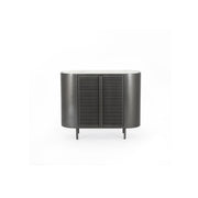 Le style de la fin des années 70 est rafraîchi par la modernité. Le fer fini en bronze est arrondi et perforé, pour une version intrigante de la forme populaire des pilules, tandis qu'un plateau en marbre blanc ajoute un intérêt matériel à cette pièce à l'esprit industriel.