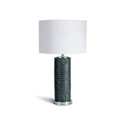 Fabriquée en céramique et exposée sur une base en nickel poli, la lampe de table Erwin est superbe dans n'importe quel espace. Le corps texturé de la lampe a été fabriqué sur mesure, moulé à partir d'une véritable peau de crocodile et méticuleusement détaillé à la main. Dimensions: