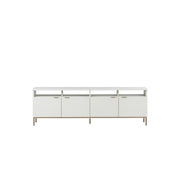 Fabriqués en Indonésie, cette magnifique console multimédia et cette armoire apporteront style moderne et élégance aux espaces de vie, de salon et de bureau à domicile. Conçu avec du bois de chêne au fini crème et un cadre en fer doré champagne. Comprend quatre armoires pour plus de style et de fonctionnalité. Coordonnez-le avec le bureau mural modulaire Ambrose et les grandes et petites bibliothèques pour un design peu encombrant.