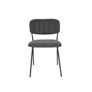 Des ambiances rétro et des couleurs neutres créent la belle et simple chaise Jolien. Un dossier canalisé rembourré combiné à une fine structure tubulaire enduite de poudre noire se joint à un siège rembourré gris foncé solide, ajoutant un confort et une touche supplémentaire à votre expérience culinaire à la maison.