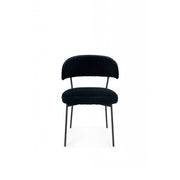 La chaise Winner fait ce qu'elle dit sur la boîte, vous assurant une salle à manger qui ne peut être décrite que comme gagnante.Velours bleu foncé froissé sur les côtés et le dos. Pieds enduits de poudre noire.
