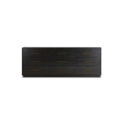 Une sophistication simple avec une touche de modernité. L'acacia massif forme des lignes épurées pour alléger la profondeur naturelle d'une finition noire brunie. La quincaillerie en laiton ajoute une touche élégante à six tiroirs spacieux.