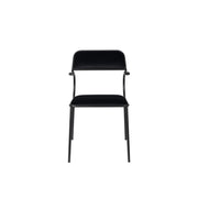 Spend your mornings at the dining table, enjoying the sunrise in the Alba chair. The matte black metal frame, with its striking curved armrests, provides a comfortable support. Upholstered in a soft, velvet on the seat and backrest provides a perfectly comfortable seat.