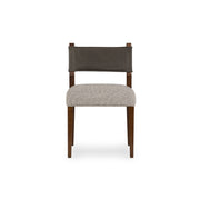 Mixed materials at their finest. Brown parawood forms a slight, simple frame for squared seating of neutral performance-grade upholstery. Charcoal top-grain leather backing takes this modern-minded dining chair to the next level..