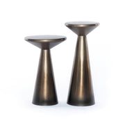 An antique brass finish highlights iron's gradual blending of hues, delivering a distinctive ombre effect to staggered accent tables. Makes for a beautiful display pedestal or handy extra surface beside a sofa.