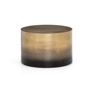 An antique brass finish highlights iron's gradual blending of hues, delivering a distinctive ombre effect to the rounded bunching table. Perfect in pairs.