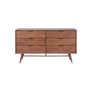 Notable for its refined early-modern lines, the Lars dresser drawer is a fine interpretation of classic mid-century design. The six drawer hardwood dresser is fitted with soft close hardware and elegant turned wood legs featuring brass leg caps. The Lars is constructed using American Poplar hardwood.