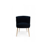 A button-tufted chair – without the nose-in-the-air attitude of old school tufted styles. The Stud chair features lush velvet upholstery and button tufting, paired with matte brass legs and clean, rounded lines.