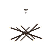 Contemporary cool: Sleek metal rods seemingly balance in this air. Clean lines and subtle design details come together making this pendant-chandelier not only handsome but versatile. The Vesper´s design ingenuity is showcased in the arms which can be positioned vertically, horizontally, or configured into a random pattern. Customize your design style even further with decorative light bulbs. Consider white frosted globe bulbs for a Mid Century vibe or go dark and moody with vintage T bulbs.